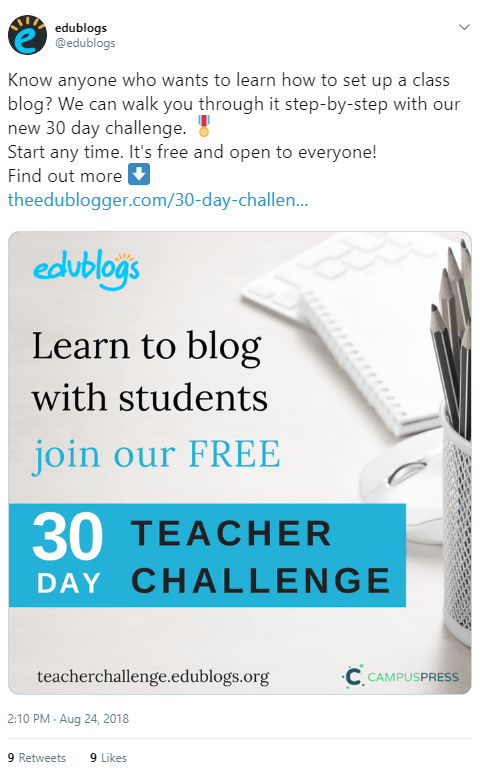 When we did a quick poll of our Edublogs community in July 2018, 61% of respondents indicated that their favorite way to keep up to date with the blogs they like to read is via social media.