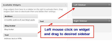 4.  Add a text widget to the desired sidebar by dragging it from the Available Widgets into the Sidebar area on the right.