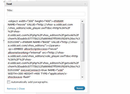 Adding HTML embed code to voki