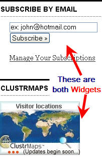 Web terminology makes it so much harder when people are starting their online journey; suddenly you’re being bombarded with all these foreign terms, and widgets are a classic example! In simple terms, widgets are mini web applications that you can put onto your website; e.g. the Clustrmap on the side bar is a widget.