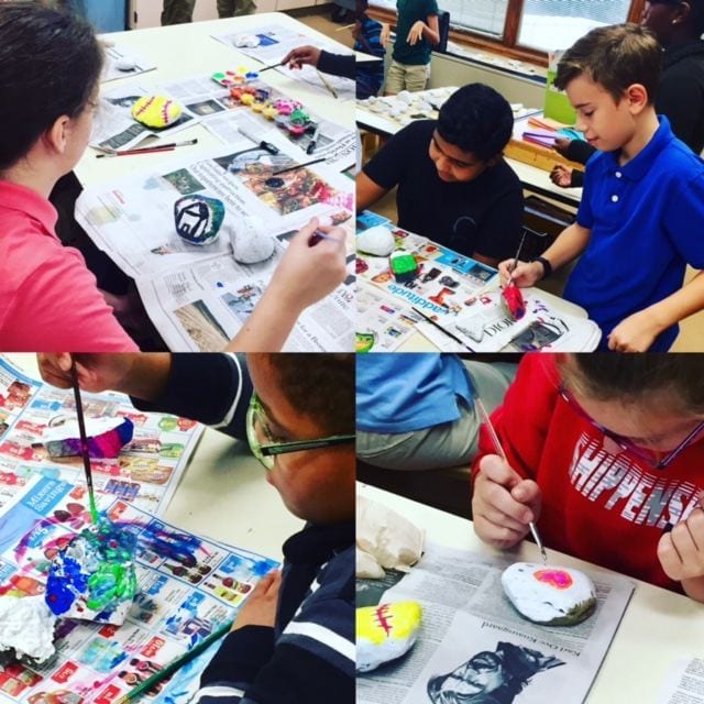 Inspired by the Kindness Rocks movement, Mrs. Shemansky and her colleague did a rock painting activity with their middle school art classes.