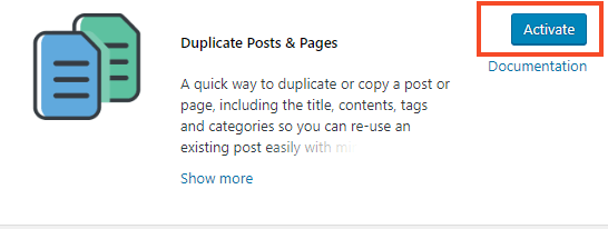 To activate the plugin, just go to Plugins in your dashboard and search for the word ‘duplicate’.