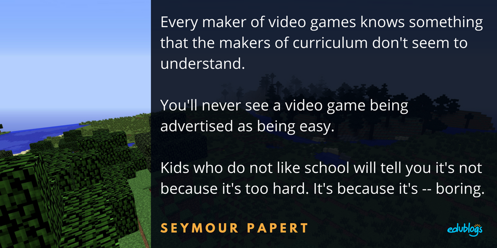 Every maker of video games knows something that the makers of curriculum don't seem to understand. You'll never see a video game being advertised as being easy. Kids who do not like school will tell you it's not because it's too hard. It's because it's -- boring. Seymour Papert2) The Power Of Authenticity