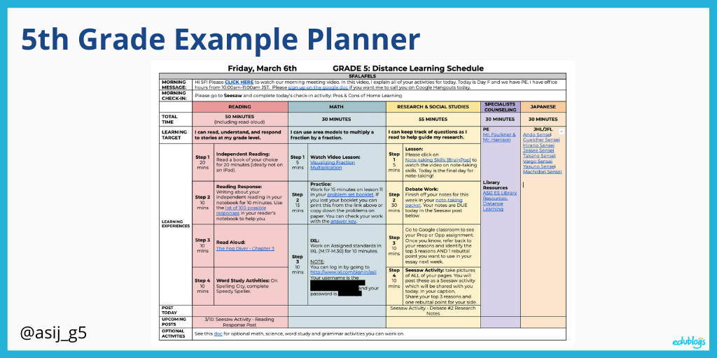 Some teachers put their planners on a Google Doc, or Sheet. Google Slides can be another awesome way to send out a daily plan and work (but even better if these Slides presentations are added to a blog, LMS, or website so they don’t get lost).