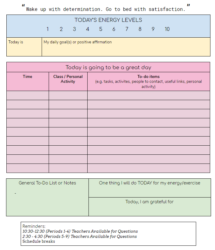 Rather than a daily approach, some schools are taking the whole week into account and giving projects or assignments that need to be completed or worked on over 5 days. Based on progress, a new plan might then be made for the following week.