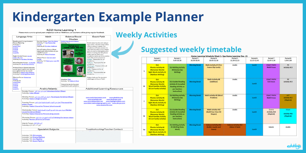 Ashley’s team sends a weekly plan to the parents of their kindergarten students along with a suggested timetable. There are no expectations that the timetable is followed exactly due to parents working and a variety of family situations.