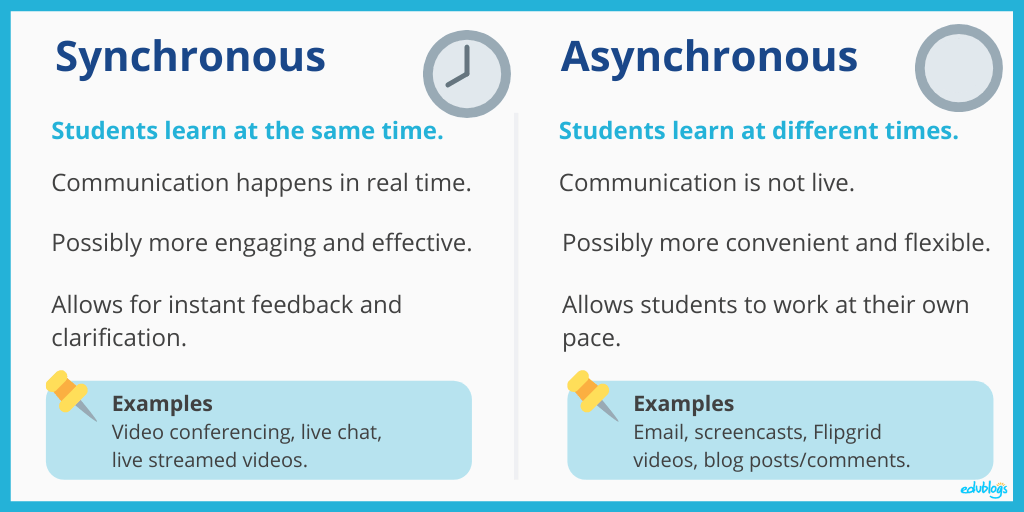 Graphic showing difference between Synchronous and Asynchronous (comparison online learning) Edublogs