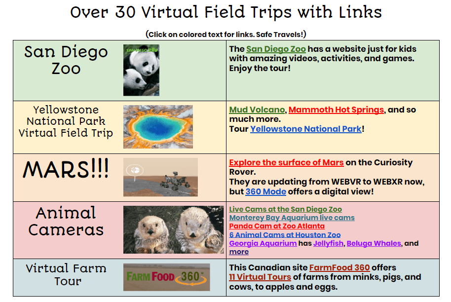 Screenshot Over 30 Virtual Field Trips with Links